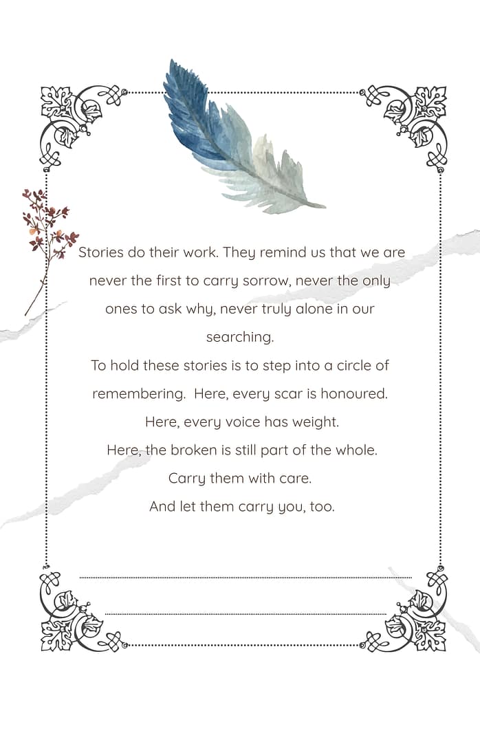 This little booklet is a thought journal for you similar to the booklet “Loving”. It is based on 2 short stories that came from dreams, gifts from spirit really. There are pages just for you to write your own stories, add your photos and other keepsakes. Sorrows and grief can seem meaningless as what we based our lives on is taken away or lost. We feel we have no foundation and no reason. But if you know how to look, you can find answers & understanding to those moments that defy reason.